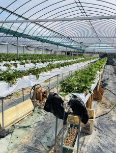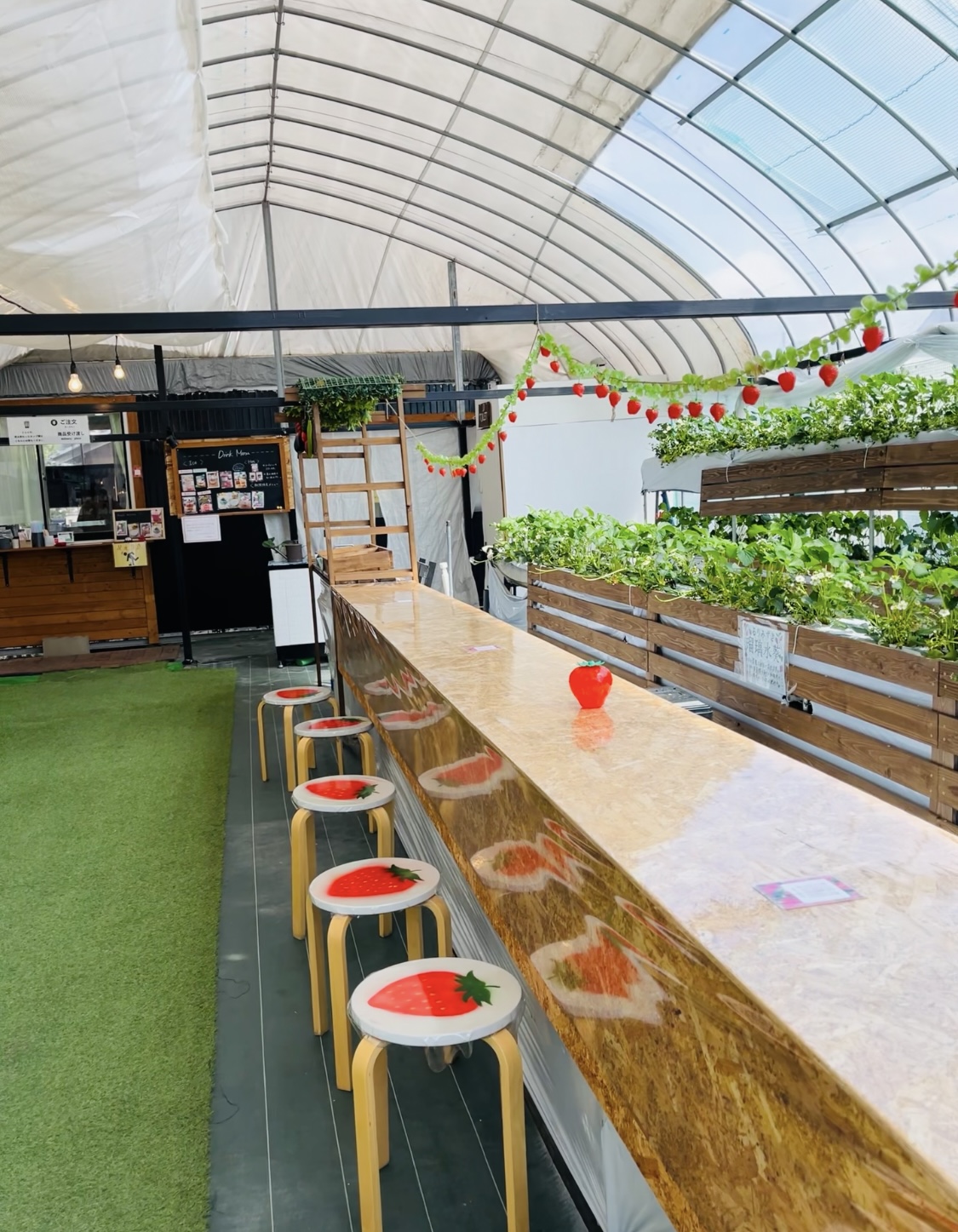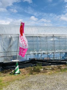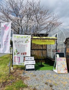 カフェのすぐ隣には、いちご農園のビニールハウスが。