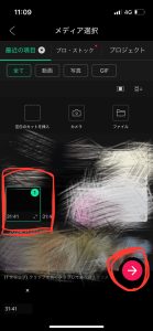 ③先ほどVLLOで編集した動画を選択